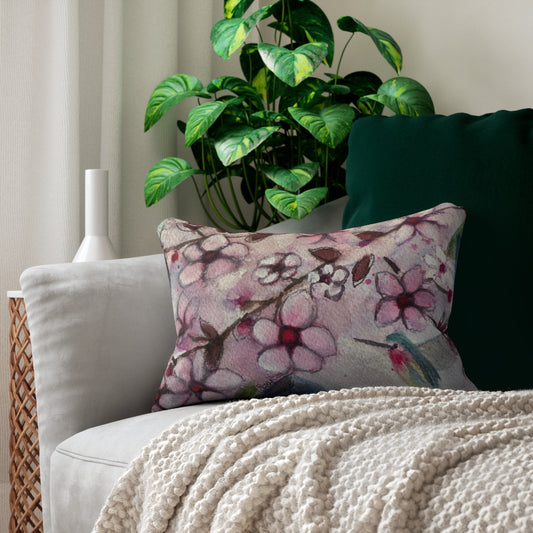 Hummingbird in Cherry Blossoms Lumbar Pillow