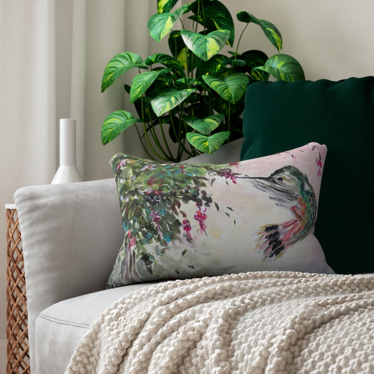 Hummingbird with Fuchsias Lumbar Pillow