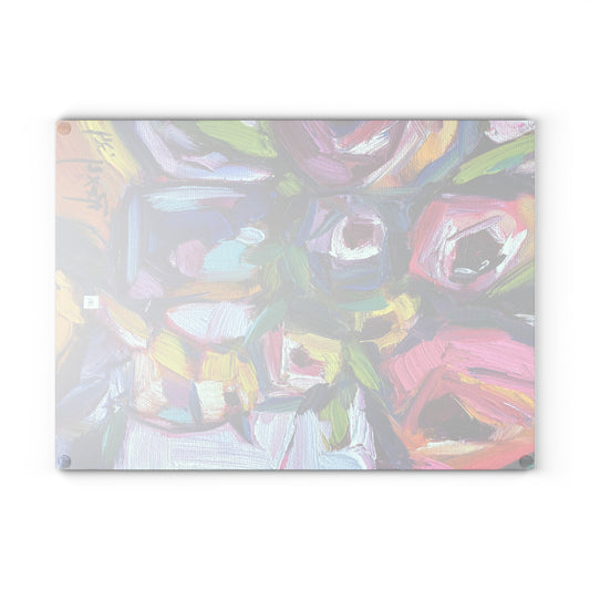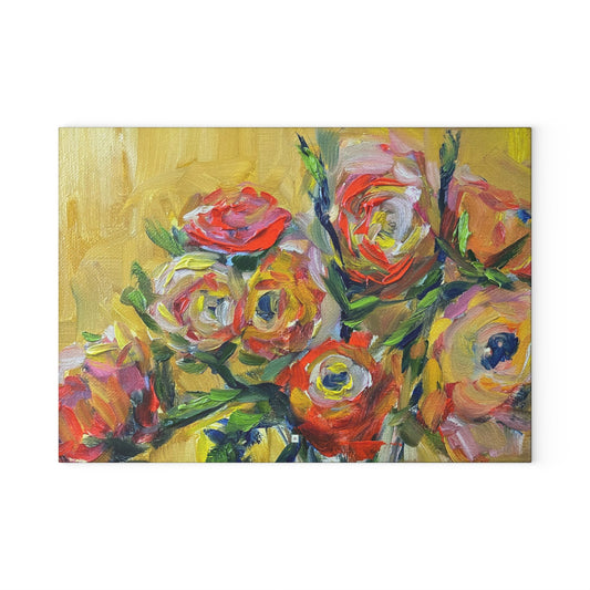Abstract Roses and Yellow Warbler Bird Glass Cutting Board