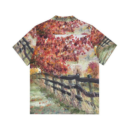 The Rickety Fence Original Oil Landscape Painting Men's Hawaiian Shirt