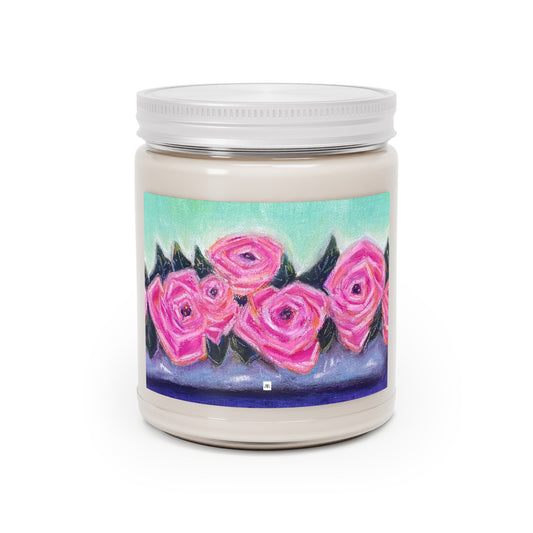 Tin Full of Roses-Original Oil Pastel Painting 8 x 20 Framed