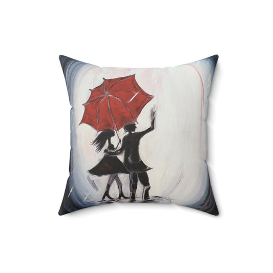 Walking in the Rain (Romantic Couple) Indoor Spun Polyester Square Pillow