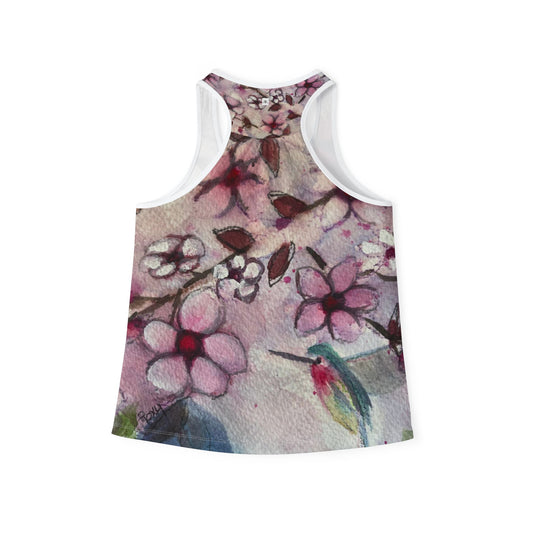Women's Racerback Tank Top-Hummingbird in Cherry Blossoms