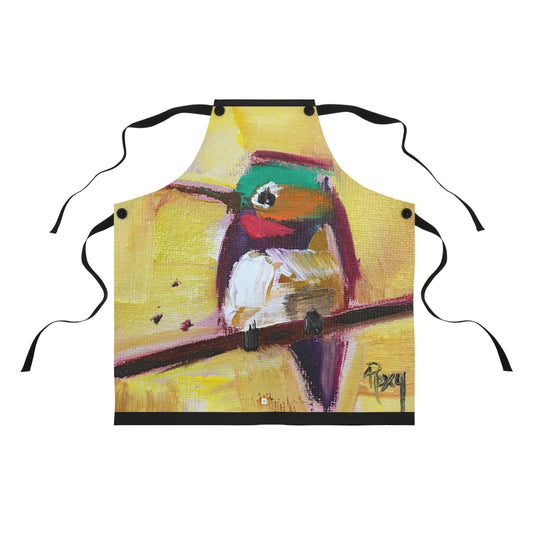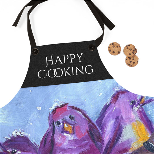 • Apron-Three Whimsical Chirpy Birds on a Snowy Branch-"Happy Cooking"