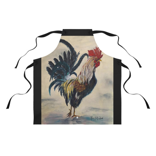 Chef Black Kitchen Apron with Original Rooster Painting Art Print Wearable Art
