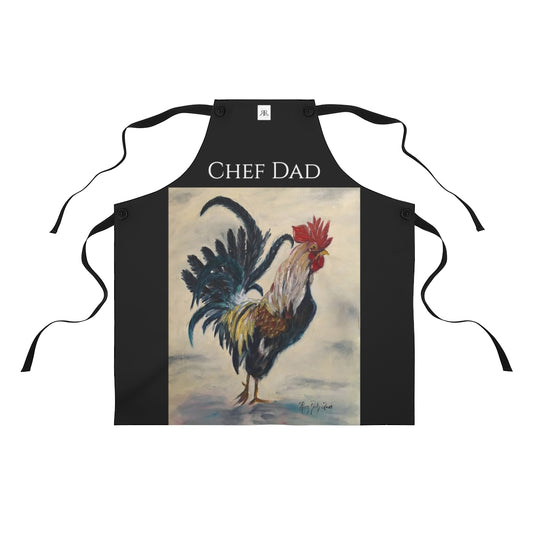 Chef Dad Original Rooster Painting Printed on Black Apron