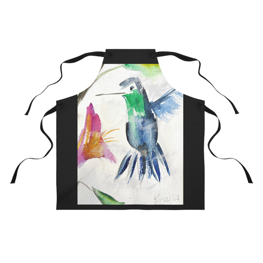 Cuppa? English UK phrase saying on a Black Kitchen Apron with Original Baby Tit Bird in the Snow Painting Art Print Wearable Art