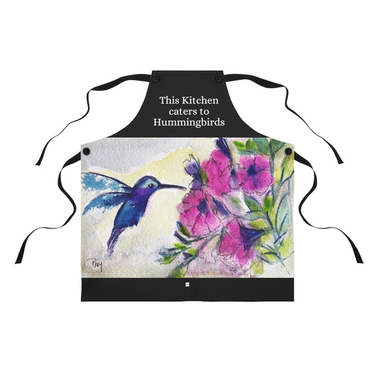 Hummingbird with Pink Flowers "This Kitchen caters to Hummingbirds" Apron