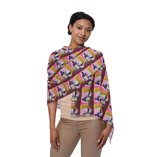 Colorful Scarf — Artistic Lightweight Neck Wrap- GBV Wine and Clique Glass
