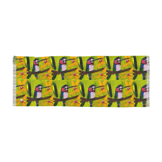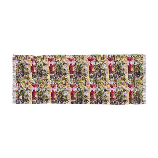 Colorful Scarf — Artistic Lightweight Neck Wrap- Hummingbird by the Window