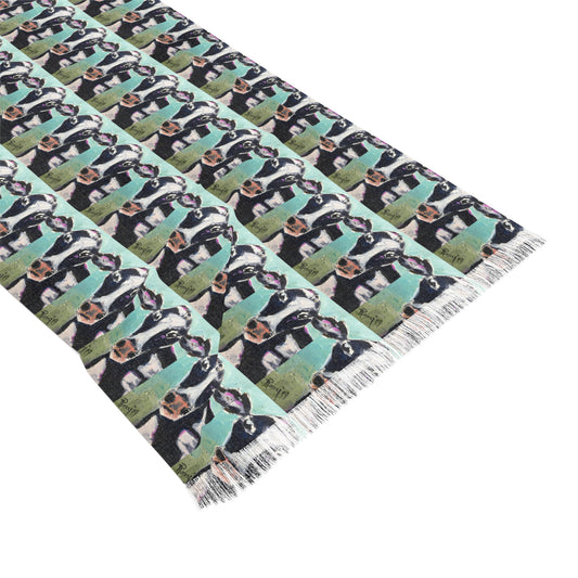 Colorful Scarf — Artistic Lightweight Neck Wrap- Belle Cow -Adorable Cow with Cowbell