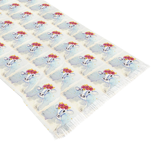 Colorful Scarf — Artistic Lightweight Neck Wrap- Betty Cow -Adorable Cow with Flower