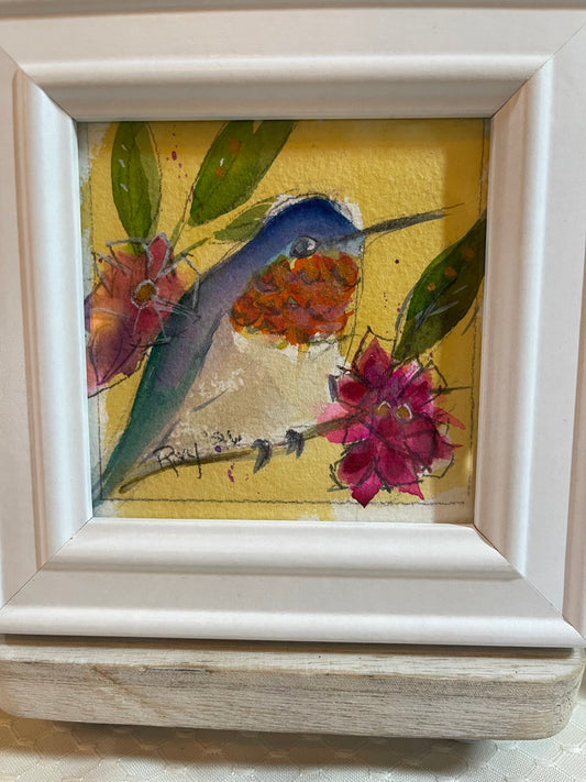 Hummingbird-Original Watercolor Painting 4x6 Framed