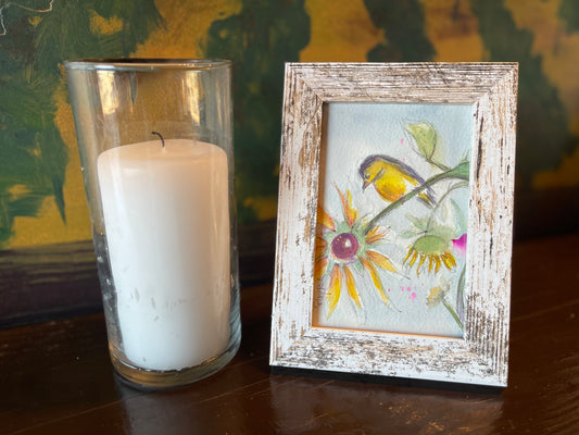 Sunflower Snacks Goldfinch-Original Watercolor Painting 4x6 Framed