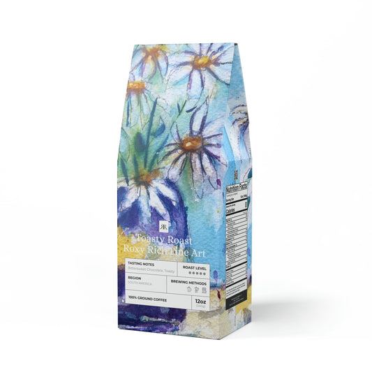 Daisies in a Purple Blue Vase- Toasty Roast Coffee 12.0z Bag