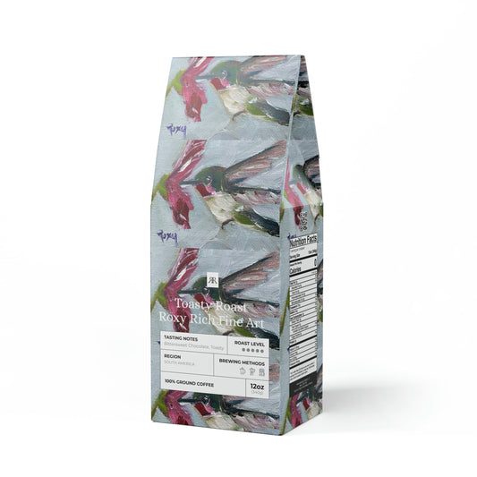 Mini Hummingbird with Pink Flower- Toasty Roast Coffee 12.0z Bag