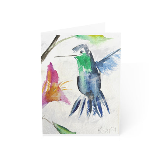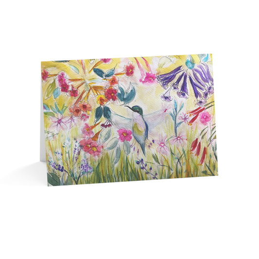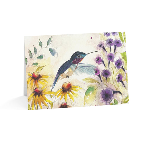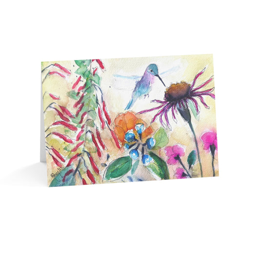 Hummingbird in Tube Flower Garden- Blank inside Greeting Cards