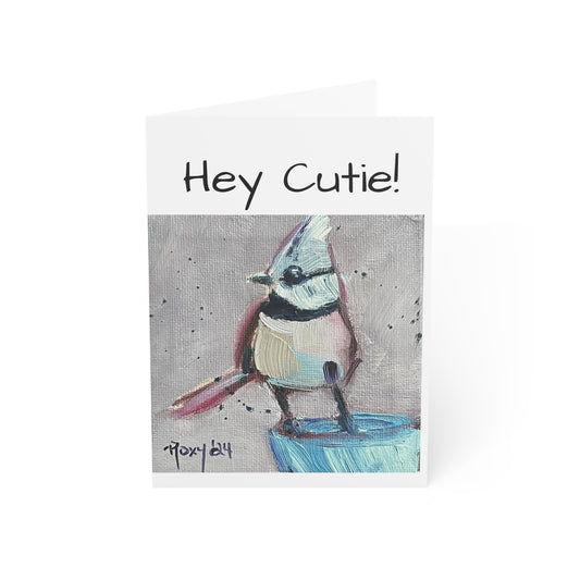 Adorable Crested Tit "Hey Cutie!" -Blank Inside Folded Greeting Cards