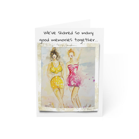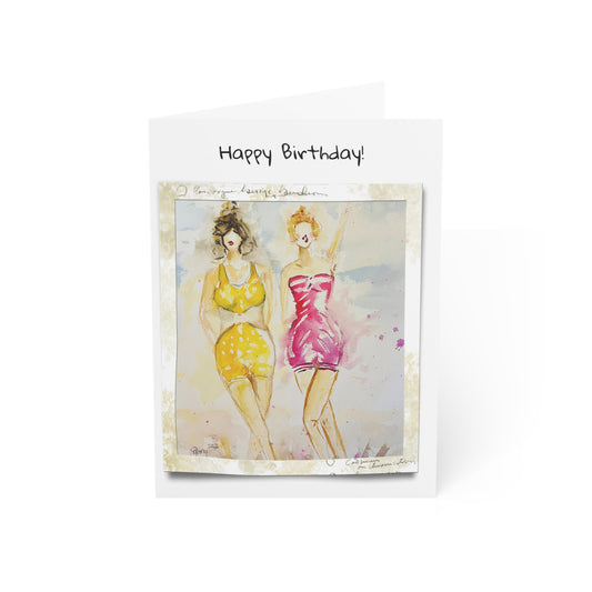 Back in the Day Beach Babes -Happy Birthday (with sentiment for a long time friend) Folded Greeting Cards