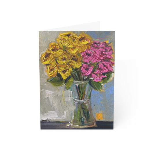 Pink and Yellow Roses -Happy Mother's Day (with sentiment) Folded Greeting Cards