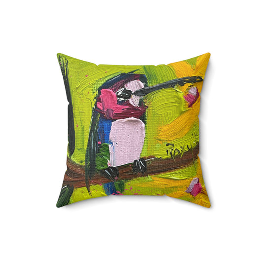 Indoor Spun Polyester Square Pillow-Winged Wonder-Hummingbird