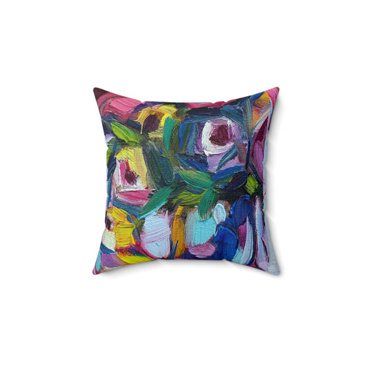 Abstract Roses and Warbler Color Blast Indoor Spun Polyester Square Pillow