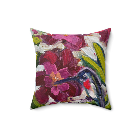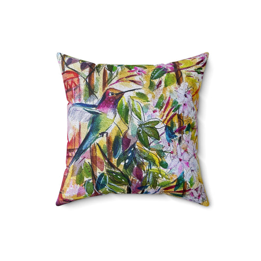 Indoor Spun Polyester Square Pillow-Hummingbird by the Jasmine