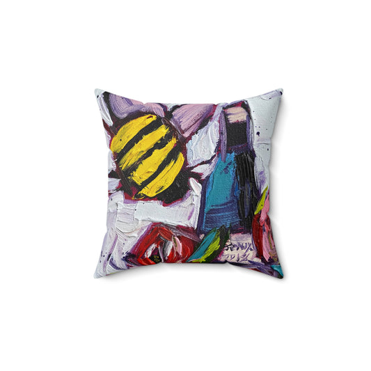 Bee Happy Wine Bee and Roses Indoor Spun Polyester Square Pillow