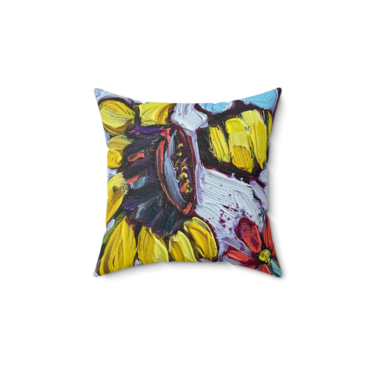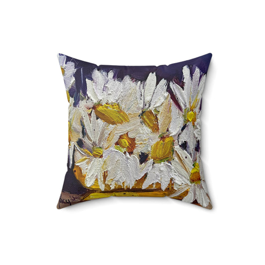 Indoor Spun Polyester Square Pillow-Vase of Daisies