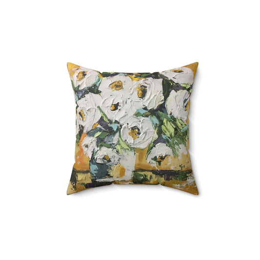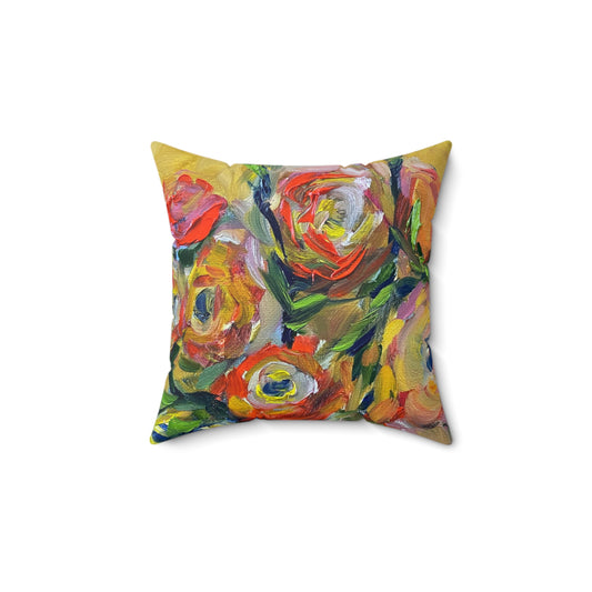 Yellow Roses and Daisies Indoor Spun Polyester Square Pillow