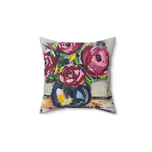 Beautiful Colors Shabby Roses Indoor Spun Polyester Square Pillow