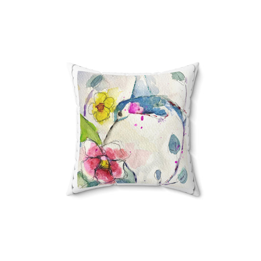 Floaty Loose Floral Hummingbird Indoor Spun Polyester Square Pillow