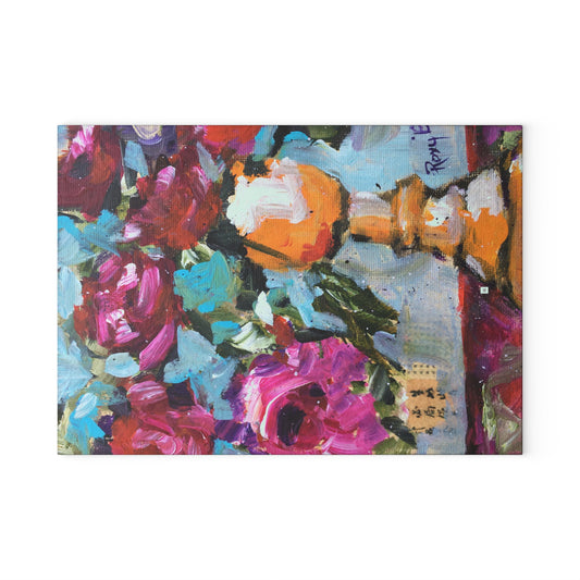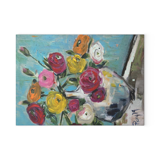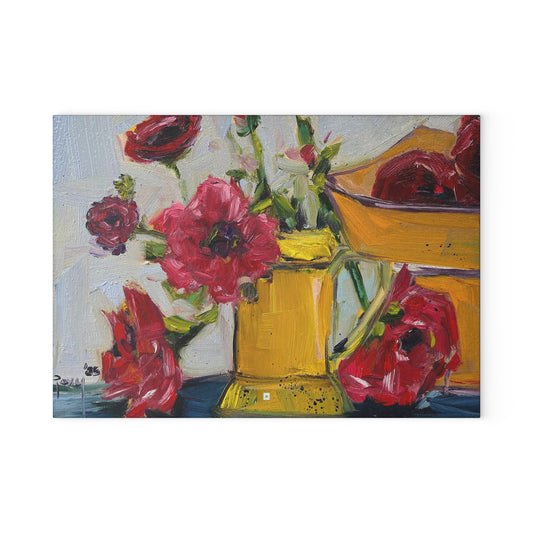 Ranunculas and Pomegranates Glass Cutting Board