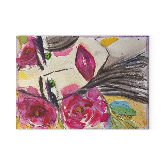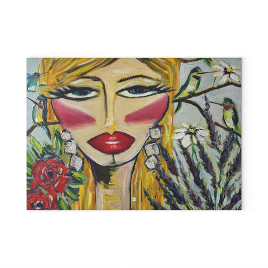 Hummingbird Lady Glass Cutting Board