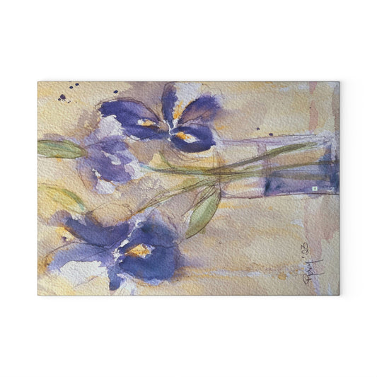 Purple Irises Glass Cutting Board
