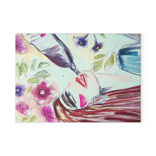 Lady with Irises: Pretty Pink Glass Cutting Board