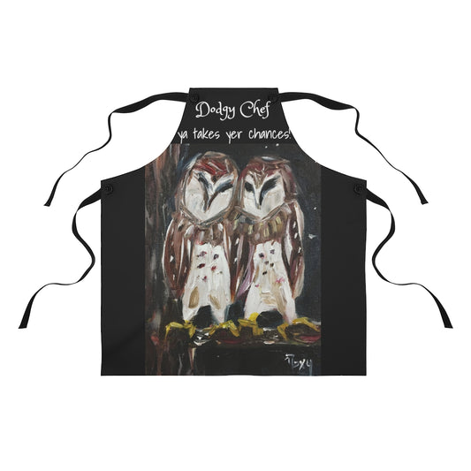 Dodgy Chef Apron funny British UK phrase saying on a Black Kitchen Apron with Original Owl Painting Art Print Wearable Art