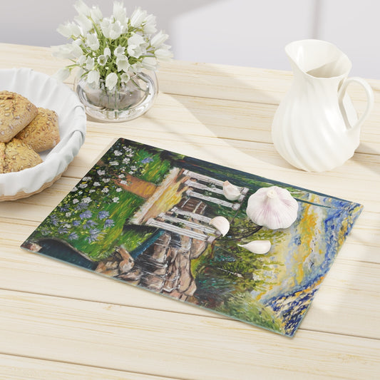 Cotswolds VillageThatched Cottage- Glass Cutting Board