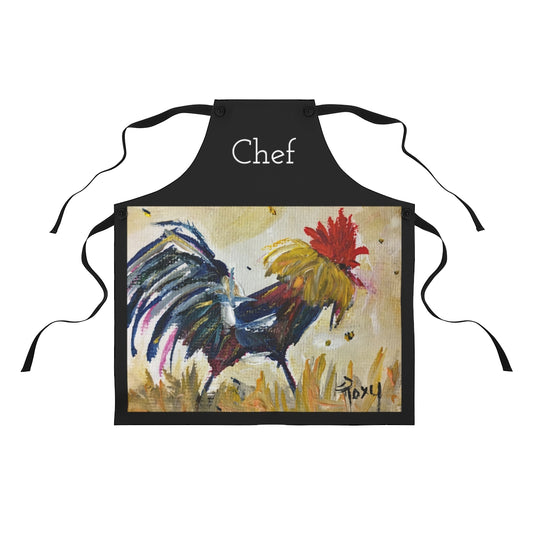 Chef Black Kitchen Apron with Original Rooster Painting Art Print Wearable Art