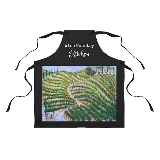 Wine Country Kitchen Chef Black Kitchen Apron with Original Vineyard Painting
