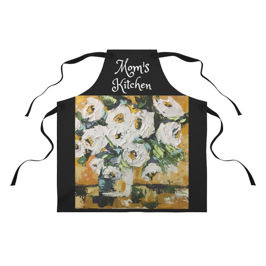 Mom's Kitchen Chef Black Kitchen Apron with Original Shabby Roses