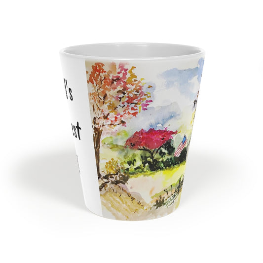 Father's Day Mug "World's Greatest Dad" with Original Patriotic Watercolor Landscape painting and American Flag printed on it. 12oz