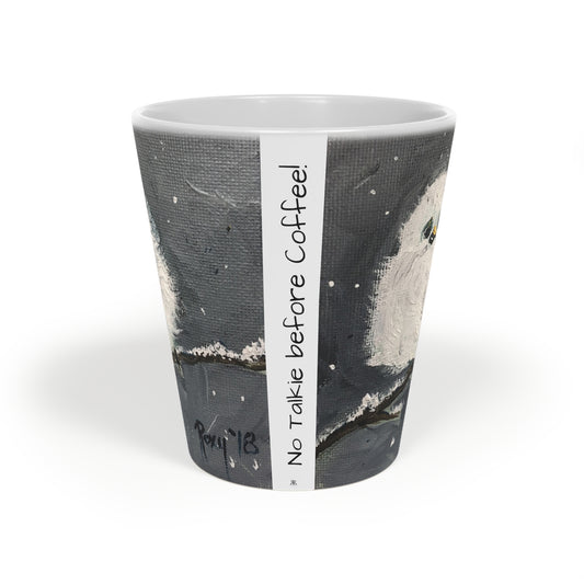 Baby Tit in Snow "No Talkie before Coffee!" Latte Mug, 12oz