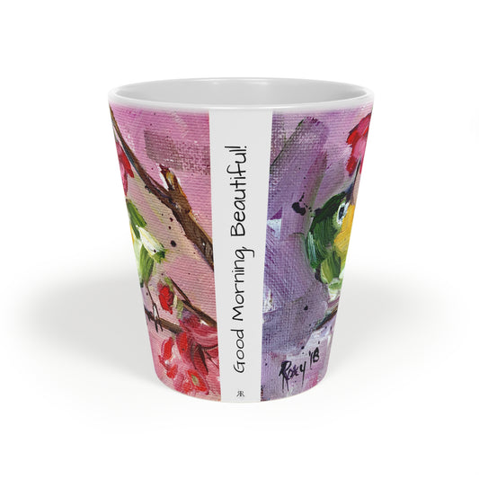 Adorable Japanese Warbler Bird "Good Morning, Beautiful!" Latte Mug, 12oz