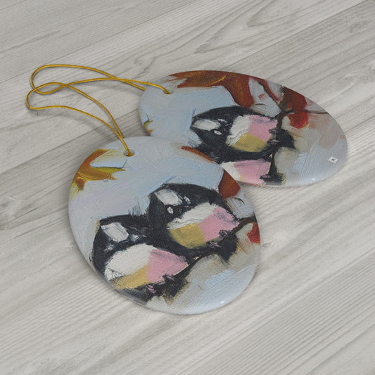 Chickadees in a Maple Tree Ceramic Ornament