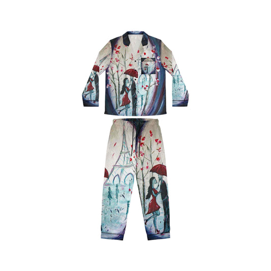 Women's Satin Pajamas — "I Only Have Eyes for You" Romantic Paris Couple (Valentine's Gift)