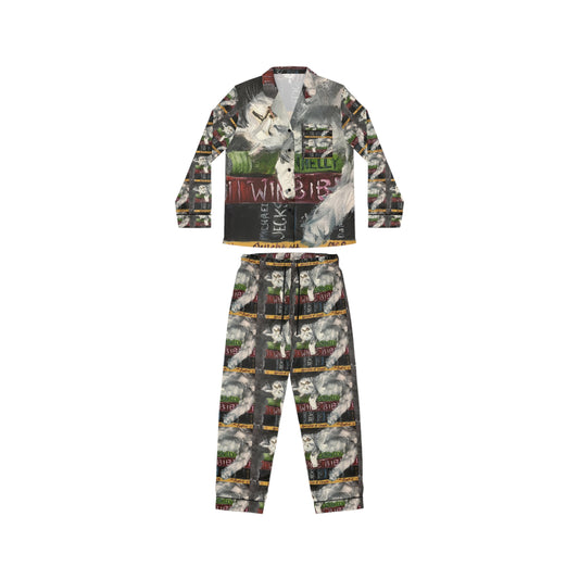 Satin Pajamas — Cat & Books Sleep Set for Women-Bibliocat