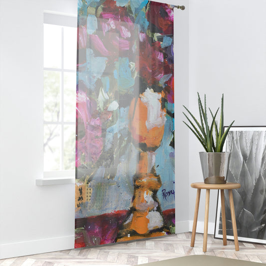 Pink Roses in an Orange Goblet 84 x 50 inch Sheer Window Curtain