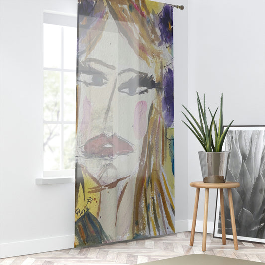 Moody Blonde with Big Lips "Whateverr!" 84 x 50 inch Sheer Window Curtain