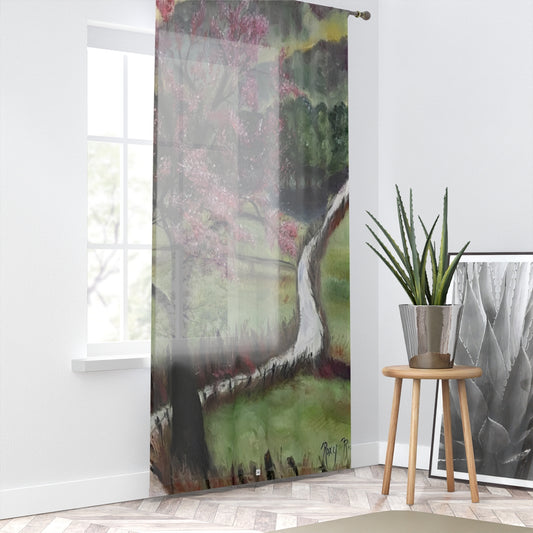 Cherry Blossom English Countryside (Cotswolds) print on 84 x 50 inch Sheer Window Curtain